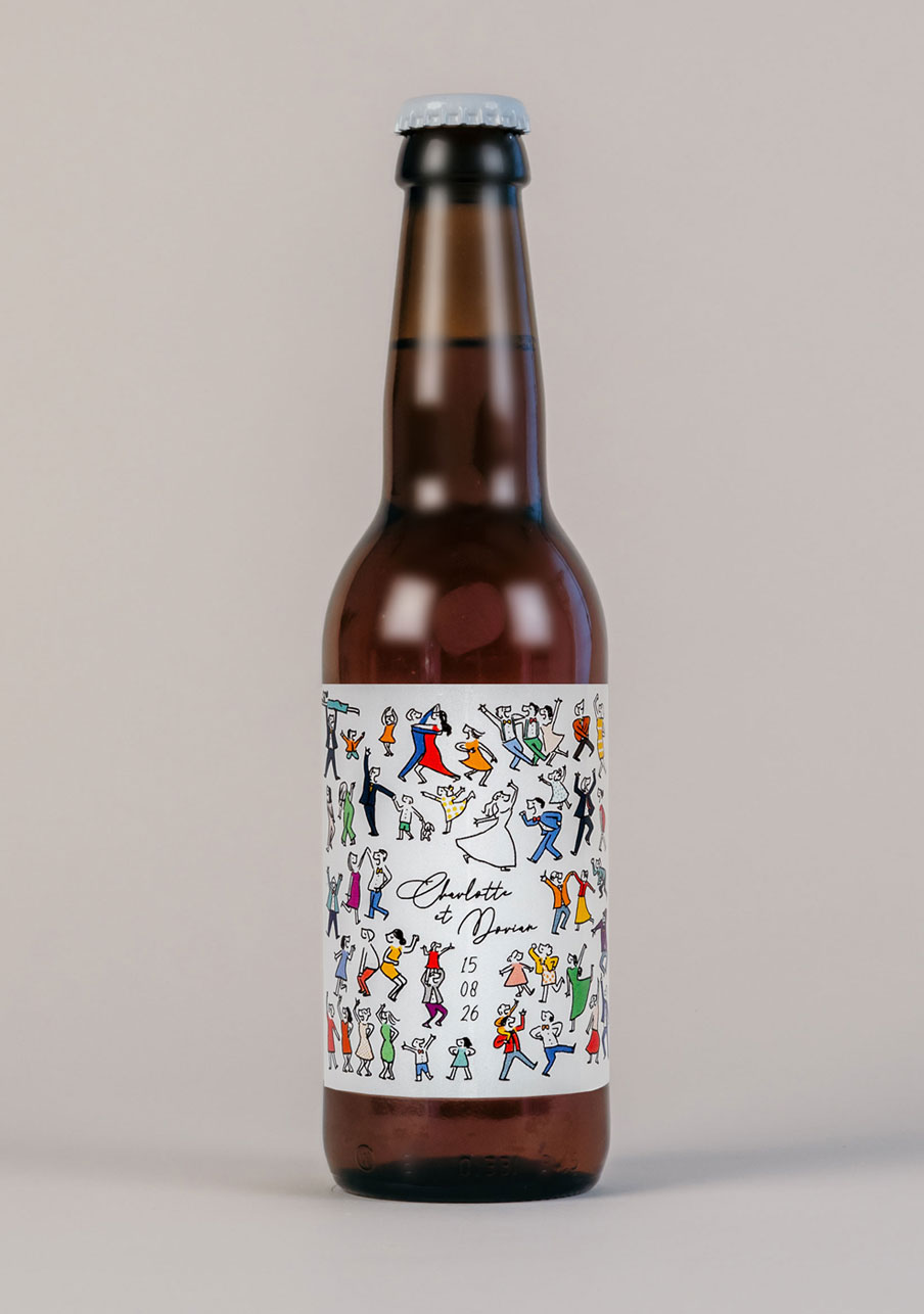 Petite bouteille de rosé mariage Scène danseurs
