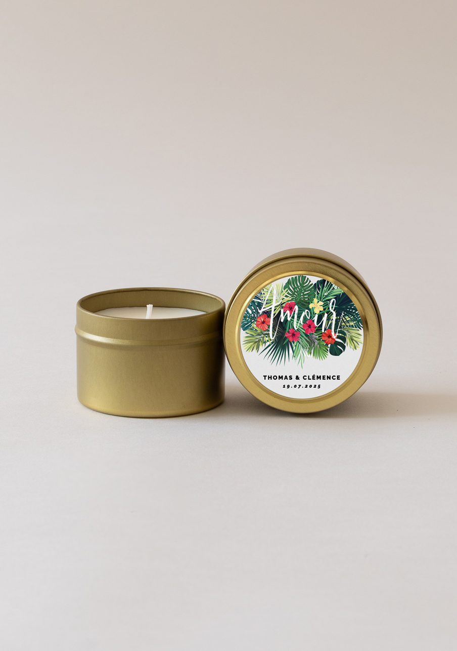 Bougie de mariage personnalisée apothicaire Tropical