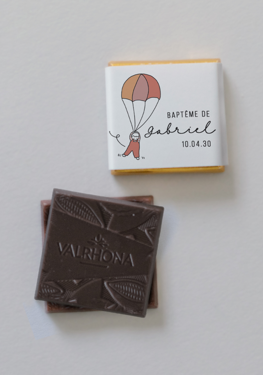 - De délicieux carrés de chocolats de la marque Valrhona, à personnaliser avec le visuel de votre choix.