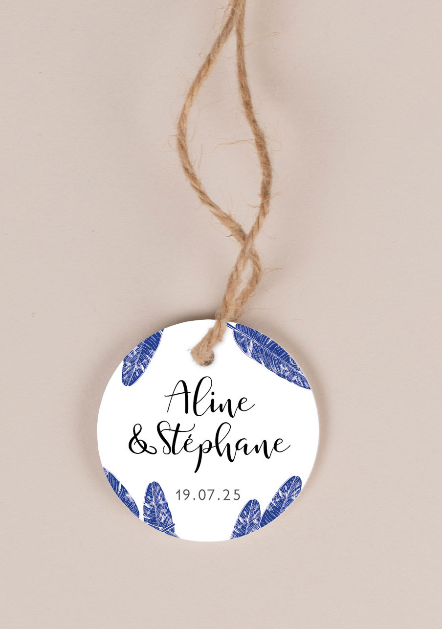 Étiquettes carrées mariage Plumes