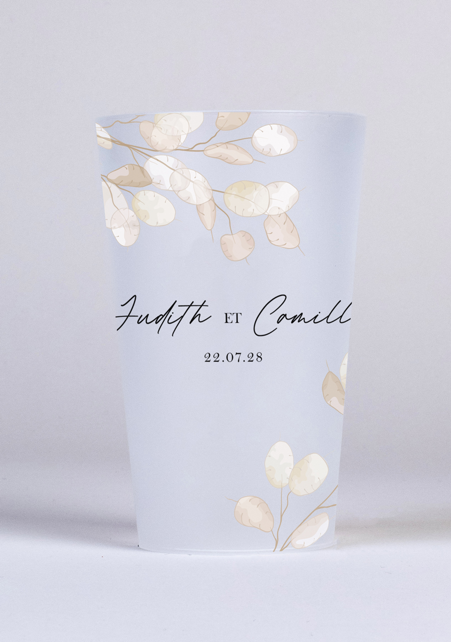 Merci pour ces jolies réalisations : un Ecocup personnalisé aux couleurs du mariage et dessin du faire-part, un beau souvenir de cette journée inoubliable et un cadeau utile et bien apprécié ! Nous en sommes ravis !