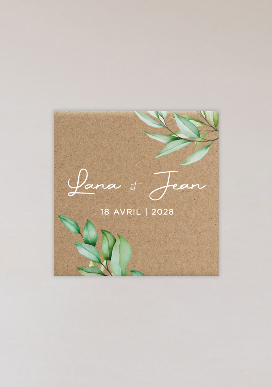Bougie de mariage personnalisée blanche Feuilles kraft
