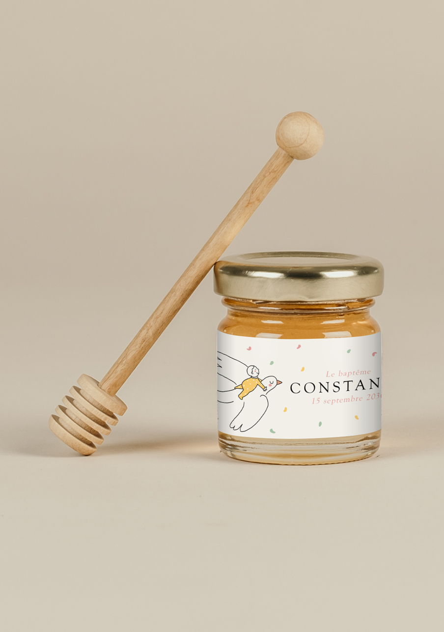 - Un miel de qualité issu de l'Agriculture Biologique à offrir en petits pots personnalisés à vos invités.