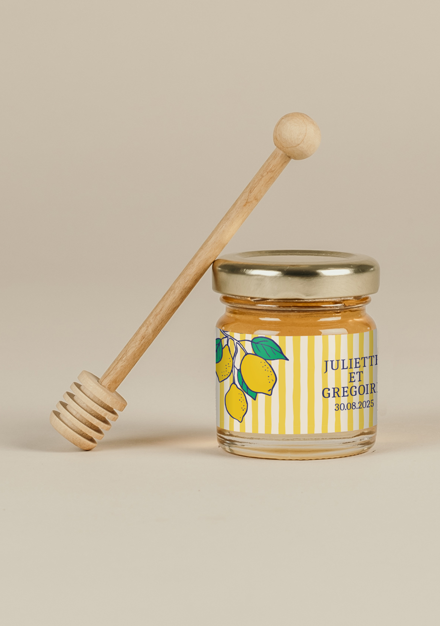 - Un miel de qualité issu de l'Agriculture Biologique à offrir en petits pots personnalisés à vos invités.