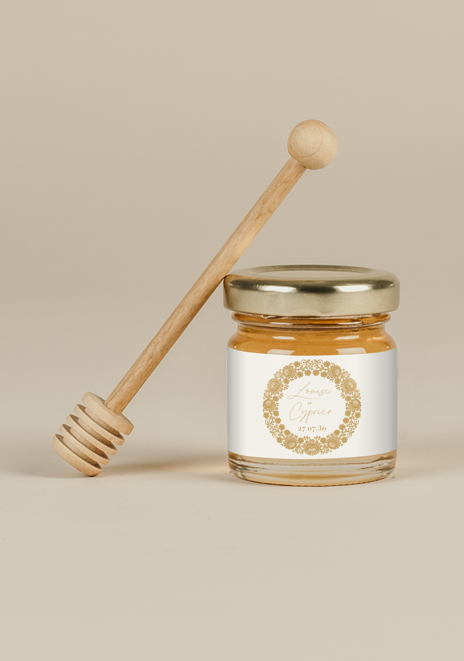 - Un miel de qualité issu de l'Agriculture Biologique à offrir en petits pots personnalisés à vos invités.