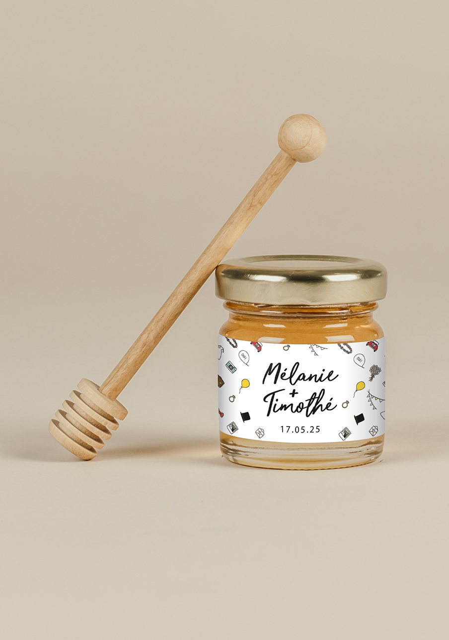 - Un miel de qualité issu de l'Agriculture Biologique à offrir en petits pots personnalisés à vos invités.
