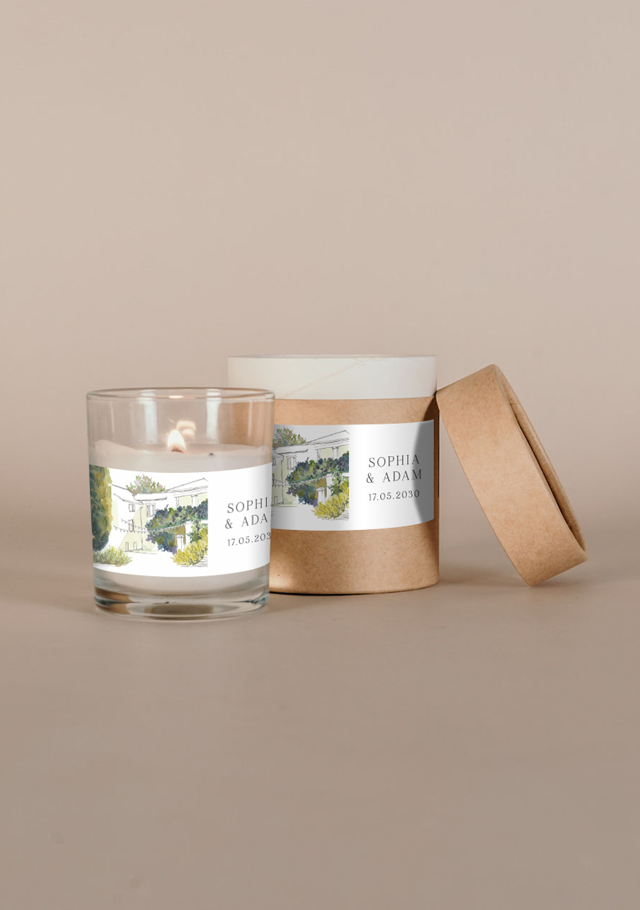 - Optez pour un cadeau élégant avec ces petites bougies en verre présentées dans leur jolie boîte en kraft et personnalisées avec leurs étiquettes.