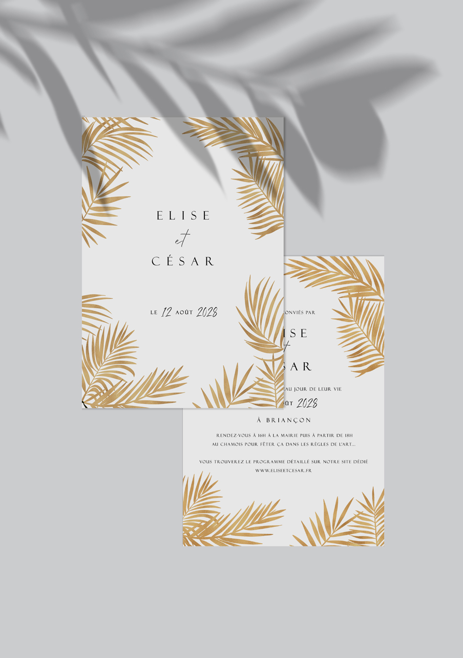 - Carton réponse (en option) : 14.8 x 10.5 cm en papier Olin mat 300gr blanc naturel (lisse) ou Rives Tradition 320gr