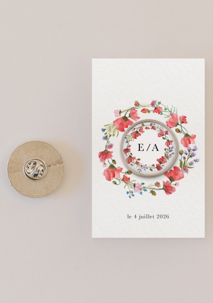 - Offrez à vos invités un pin’s personnalisé de mariage qui fera toute la différence : un petit accessoire tendance, élégant et totalement à votre image. Personnalisable avec vos prénoms, votre date et un visuel unique, ce pin’s devient un souvenir mémorable que chacun pourra conserver et porter. Un cadeau original, durable et irrésistible pour célébrer votre plus beau jour.