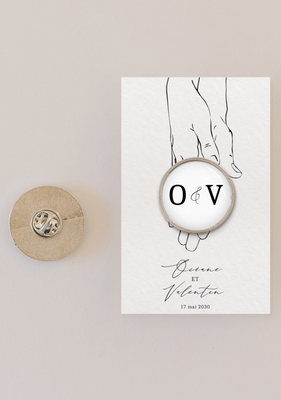 - Offrez à vos invités un pin’s personnalisé de mariage qui fera toute la différence : un petit accessoire tendance, élégant et totalement à votre image. Personnalisable avec vos prénoms, votre date et un visuel unique, ce pin’s devient un souvenir mémorable que chacun pourra conserver et porter. Un cadeau original, durable et irrésistible pour célébrer votre plus beau jour.