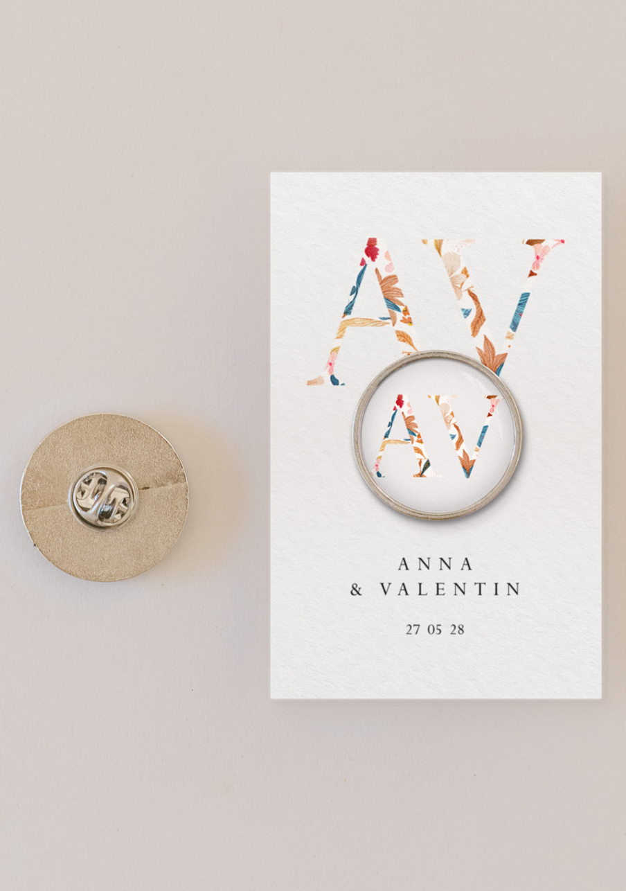 - Offrez à vos invités un pin’s personnalisé de mariage qui fera toute la différence : un petit accessoire tendance, élégant et totalement à votre image. Personnalisable avec vos prénoms, votre date et un visuel unique, ce pin’s devient un souvenir mémorable que chacun pourra conserver et porter. Un cadeau original, durable et irrésistible pour célébrer votre plus beau jour.