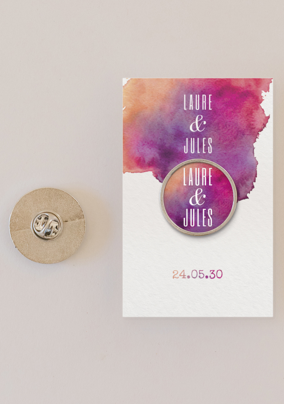 - Offrez à vos invités un pin’s personnalisé de mariage qui fera toute la différence : un petit accessoire tendance, élégant et totalement à votre image. Personnalisable avec vos prénoms, votre date et un visuel unique, ce pin’s devient un souvenir mémorable que chacun pourra conserver et porter. Un cadeau original, durable et irrésistible pour célébrer votre plus beau jour.