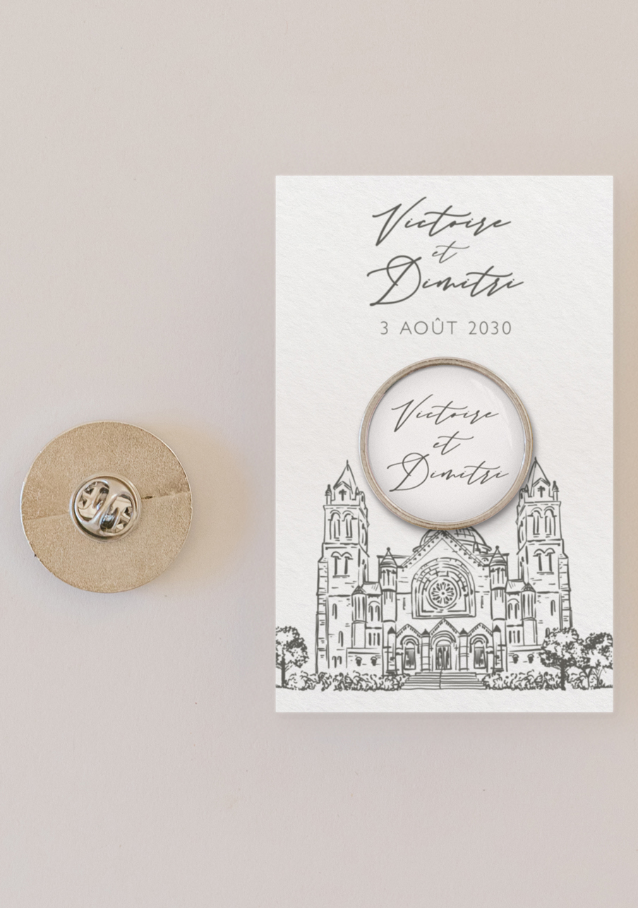 - Offrez à vos invités un pin’s personnalisé de mariage qui fera toute la différence : un petit accessoire tendance, élégant et totalement à votre image. Personnalisable avec vos prénoms, votre date et un visuel unique, ce pin’s devient un souvenir mémorable que chacun pourra conserver et porter. Un cadeau original, durable et irrésistible pour célébrer votre plus beau jour.