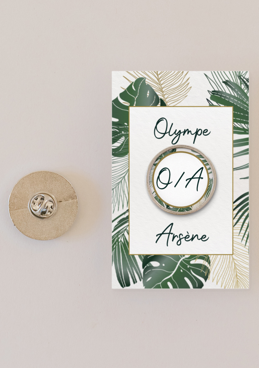 - Offrez à vos invités un pin’s personnalisé de mariage qui fera toute la différence : un petit accessoire tendance, élégant et totalement à votre image. Personnalisable avec vos prénoms, votre date et un visuel unique, ce pin’s devient un souvenir mémorable que chacun pourra conserver et porter. Un cadeau original, durable et irrésistible pour célébrer votre plus beau jour.