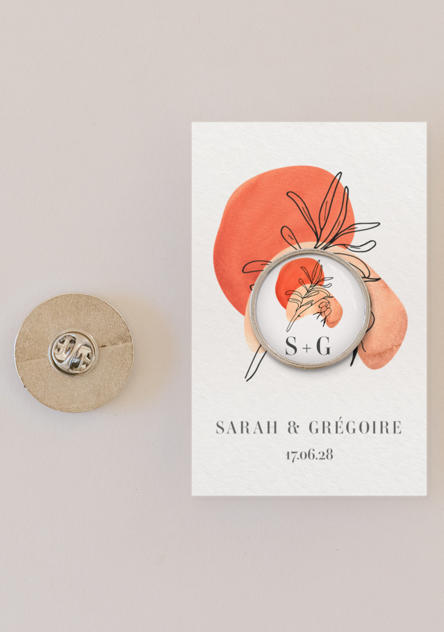 - Offrez à vos invités un pin’s personnalisé de mariage qui fera toute la différence : un petit accessoire tendance, élégant et totalement à votre image. Personnalisable avec vos prénoms, votre date et un visuel unique, ce pin’s devient un souvenir mémorable que chacun pourra conserver et porter. Un cadeau original, durable et irrésistible pour célébrer votre plus beau jour.