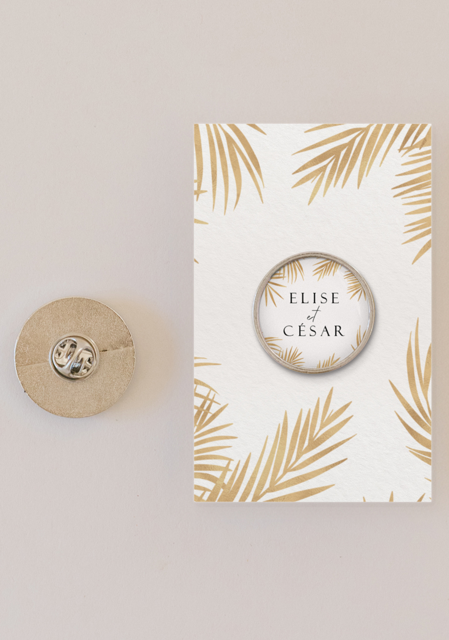 - Offrez à vos invités un pin’s personnalisé de mariage qui fera toute la différence : un petit accessoire tendance, élégant et totalement à votre image. Personnalisable avec vos prénoms, votre date et un visuel unique, ce pin’s devient un souvenir mémorable que chacun pourra conserver et porter. Un cadeau original, durable et irrésistible pour célébrer votre plus beau jour.