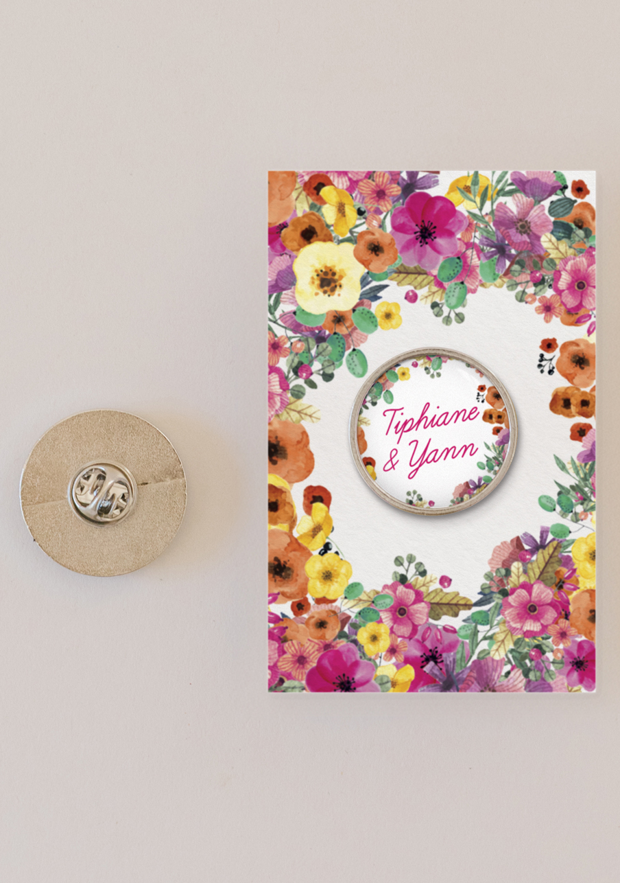 - Offrez à vos invités un pin’s personnalisé de mariage qui fera toute la différence : un petit accessoire tendance, élégant et totalement à votre image. Personnalisable avec vos prénoms, votre date et un visuel unique, ce pin’s devient un souvenir mémorable que chacun pourra conserver et porter. Un cadeau original, durable et irrésistible pour célébrer votre plus beau jour.