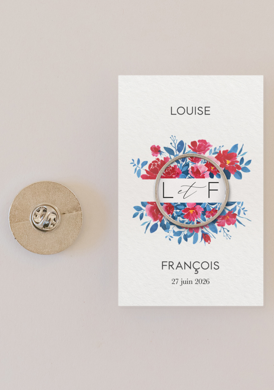 - Offrez à vos invités un pin’s personnalisé de mariage qui fera toute la différence : un petit accessoire tendance, élégant et totalement à votre image. Personnalisable avec vos prénoms, votre date et un visuel unique, ce pin’s devient un souvenir mémorable que chacun pourra conserver et porter. Un cadeau original, durable et irrésistible pour célébrer votre plus beau jour.