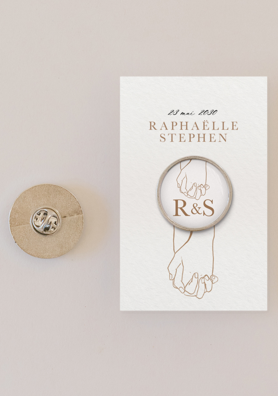 - Offrez à vos invités un pin’s personnalisé de mariage qui fera toute la différence : un petit accessoire tendance, élégant et totalement à votre image. Personnalisable avec vos prénoms, votre date et un visuel unique, ce pin’s devient un souvenir mémorable que chacun pourra conserver et porter. Un cadeau original, durable et irrésistible pour célébrer votre plus beau jour.