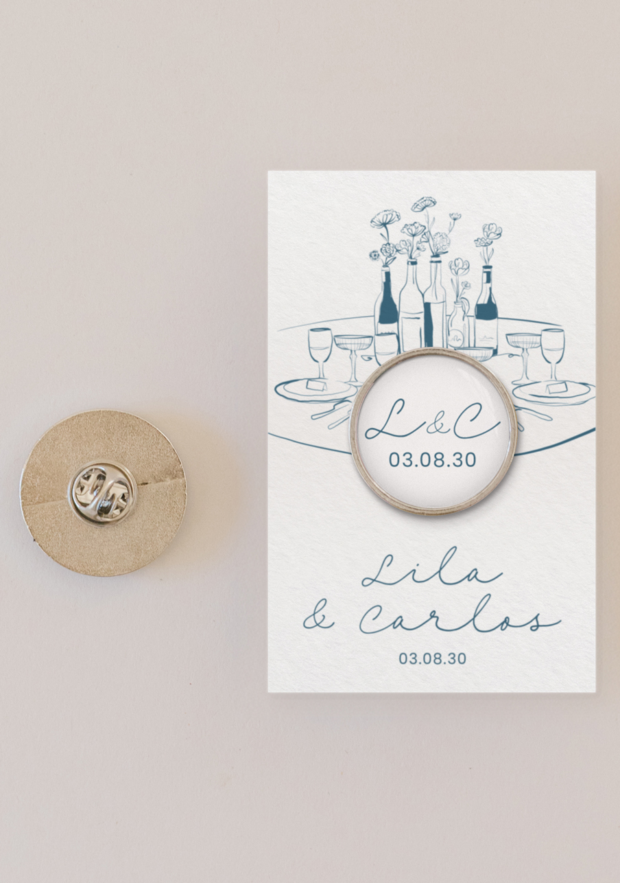 - Offrez à vos invités un pin’s personnalisé de mariage qui fera toute la différence : un petit accessoire tendance, élégant et totalement à votre image. Personnalisable avec vos prénoms, votre date et un visuel unique, ce pin’s devient un souvenir mémorable que chacun pourra conserver et porter. Un cadeau original, durable et irrésistible pour célébrer votre plus beau jour.