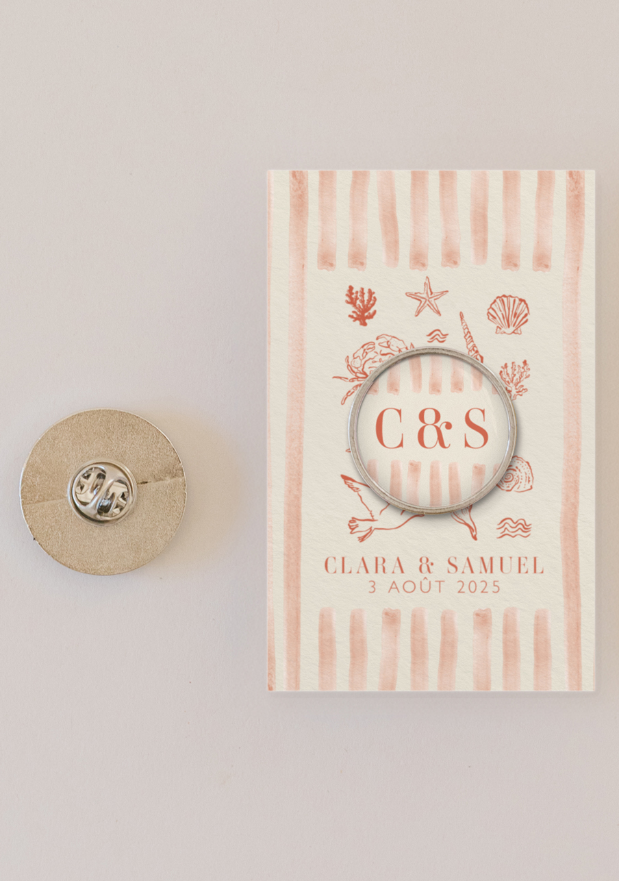- Offrez à vos invités un pin’s personnalisé de mariage qui fera toute la différence : un petit accessoire tendance, élégant et totalement à votre image. Personnalisable avec vos prénoms, votre date et un visuel unique, ce pin’s devient un souvenir mémorable que chacun pourra conserver et porter. Un cadeau original, durable et irrésistible pour célébrer votre plus beau jour.