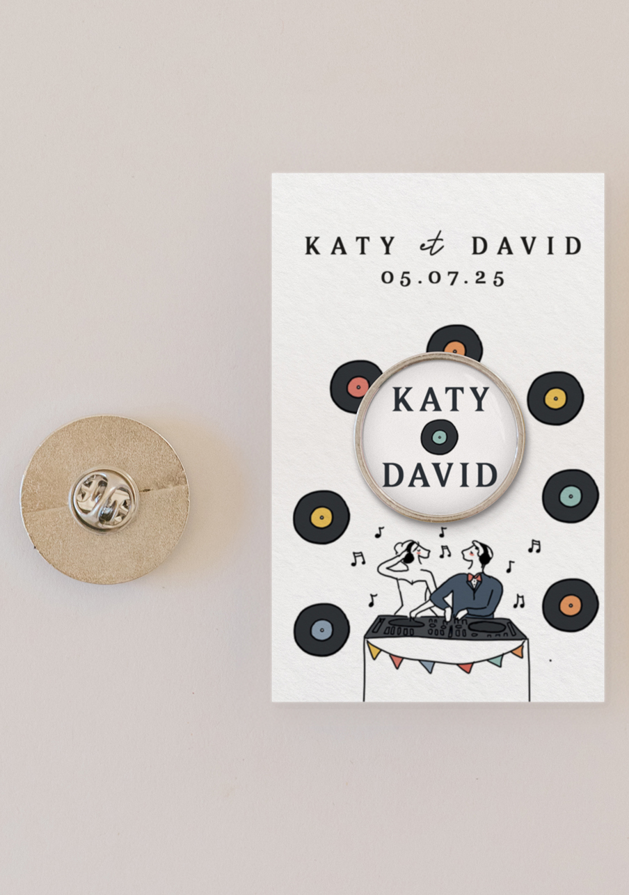 - Offrez à vos invités un pin’s personnalisé de mariage qui fera toute la différence : un petit accessoire tendance, élégant et totalement à votre image. Personnalisable avec vos prénoms, votre date et un visuel unique, ce pin’s devient un souvenir mémorable que chacun pourra conserver et porter. Un cadeau original, durable et irrésistible pour célébrer votre plus beau jour.
