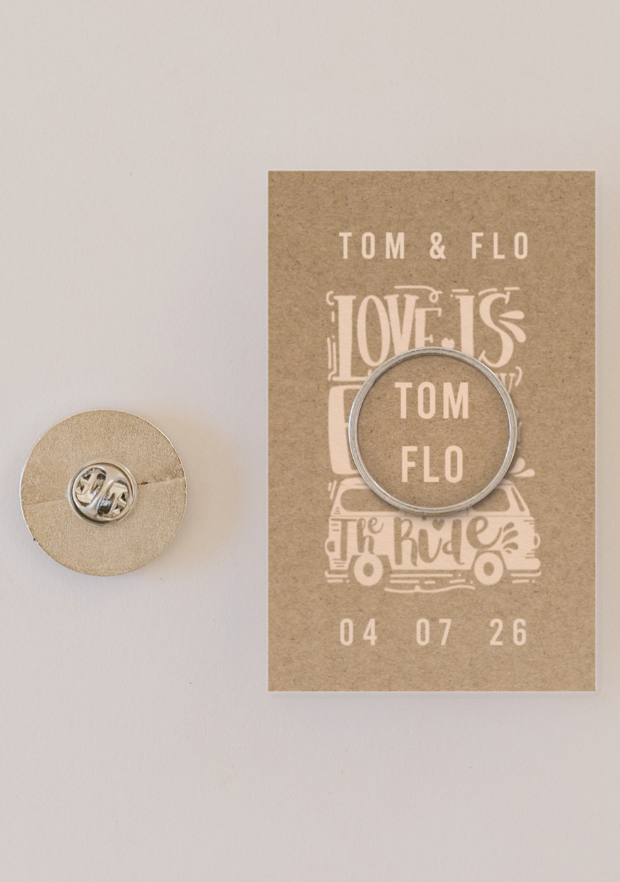 - Offrez à vos invités un pin’s personnalisé de mariage qui fera toute la différence : un petit accessoire tendance, élégant et totalement à votre image. Personnalisable avec vos prénoms, votre date et un visuel unique, ce pin’s devient un souvenir mémorable que chacun pourra conserver et porter. Un cadeau original, durable et irrésistible pour célébrer votre plus beau jour.