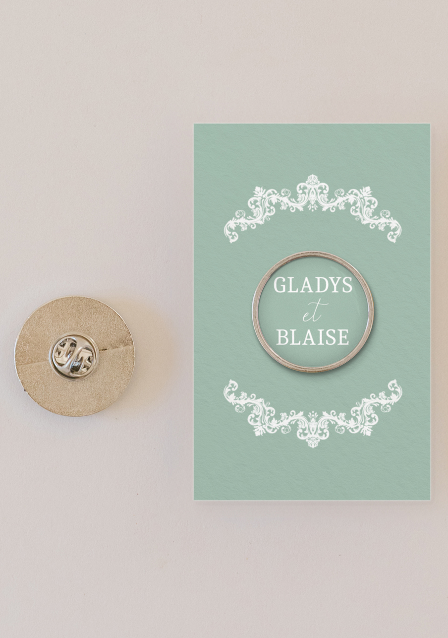 - Offrez à vos invités un pin’s personnalisé de mariage qui fera toute la différence : un petit accessoire tendance, élégant et totalement à votre image. Personnalisable avec vos prénoms, votre date et un visuel unique, ce pin’s devient un souvenir mémorable que chacun pourra conserver et porter. Un cadeau original, durable et irrésistible pour célébrer votre plus beau jour.