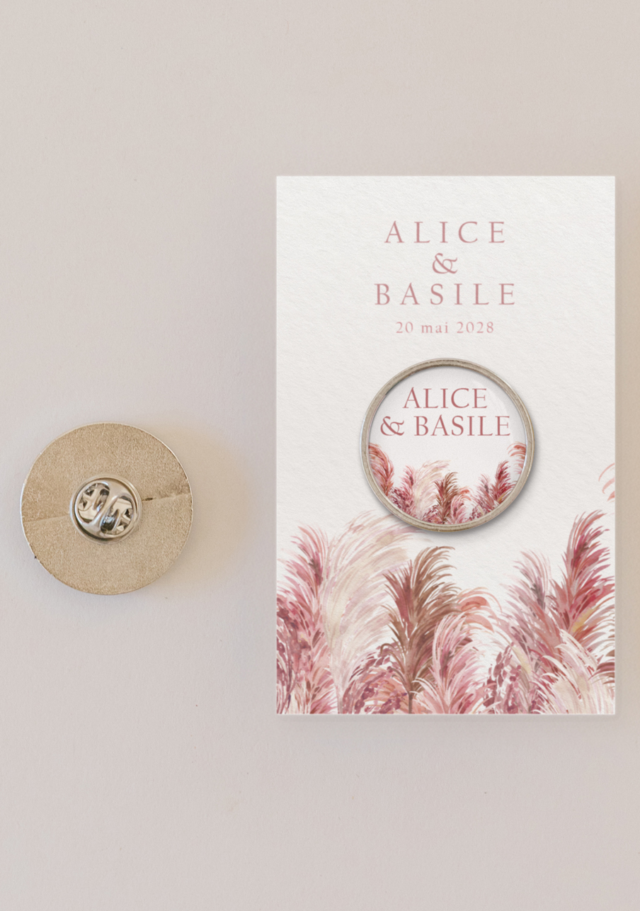 - Offrez à vos invités un pin’s personnalisé de mariage qui fera toute la différence : un petit accessoire tendance, élégant et totalement à votre image. Personnalisable avec vos prénoms, votre date et un visuel unique, ce pin’s devient un souvenir mémorable que chacun pourra conserver et porter. Un cadeau original, durable et irrésistible pour célébrer votre plus beau jour.