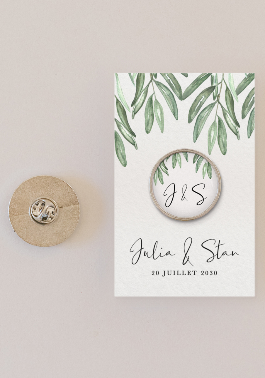 - Offrez à vos invités un pin’s personnalisé de mariage qui fera toute la différence : un petit accessoire tendance, élégant et totalement à votre image. Personnalisable avec vos prénoms, votre date et un visuel unique, ce pin’s devient un souvenir mémorable que chacun pourra conserver et porter. Un cadeau original, durable et irrésistible pour célébrer votre plus beau jour.