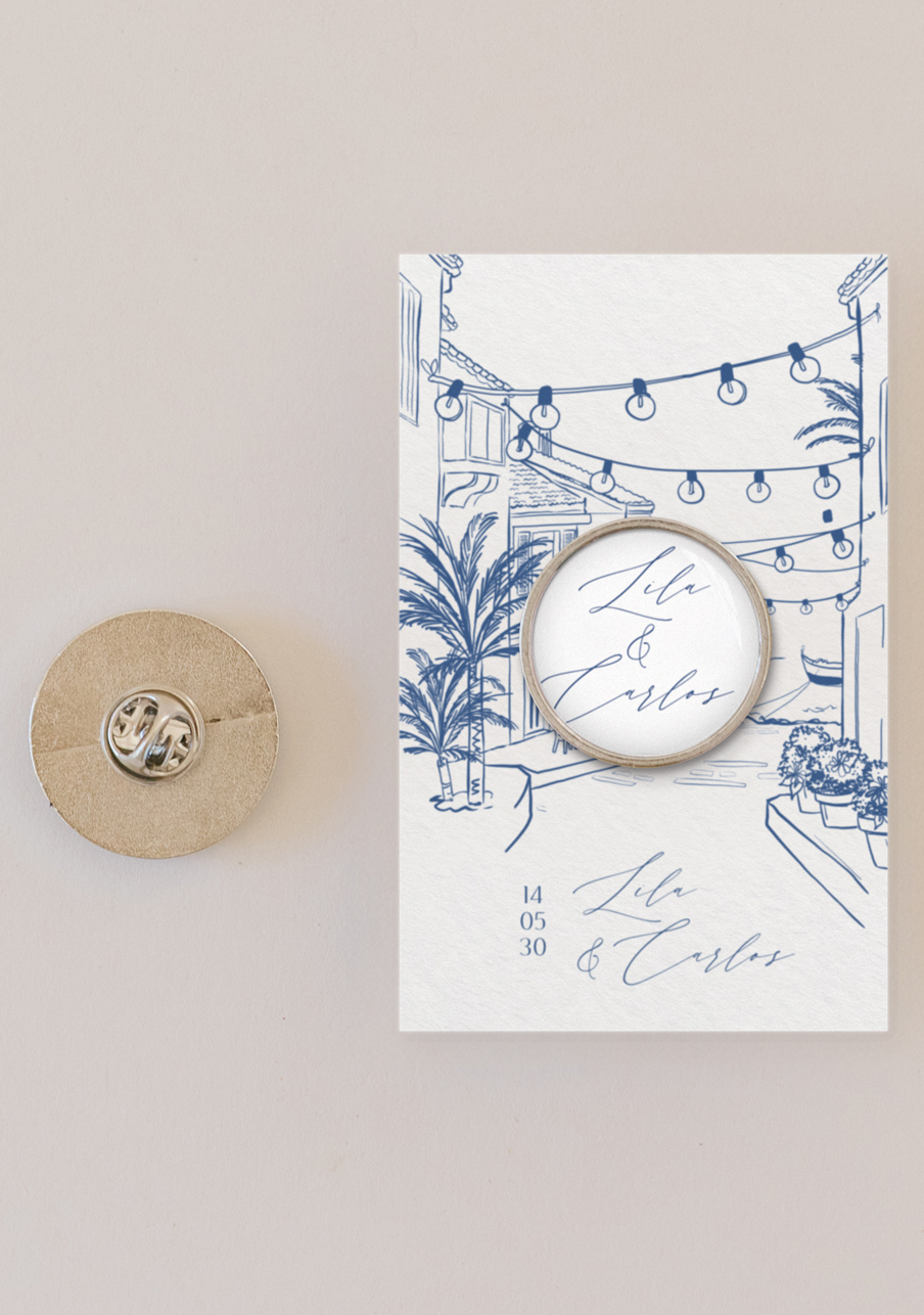 - Offrez à vos invités un pin’s personnalisé de mariage qui fera toute la différence : un petit accessoire tendance, élégant et totalement à votre image. Personnalisable avec vos prénoms, votre date et un visuel unique, ce pin’s devient un souvenir mémorable que chacun pourra conserver et porter. Un cadeau original, durable et irrésistible pour célébrer votre plus beau jour.