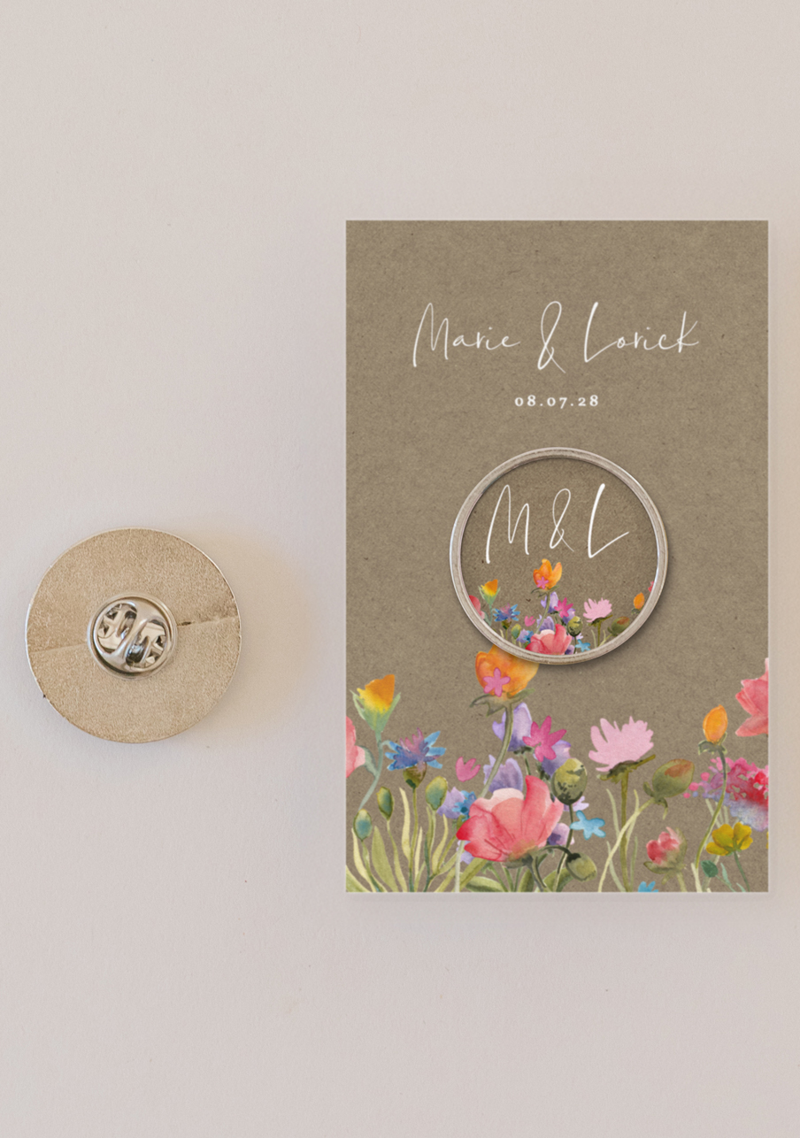 - Offrez à vos invités un pin’s personnalisé de mariage qui fera toute la différence : un petit accessoire tendance, élégant et totalement à votre image. Personnalisable avec vos prénoms, votre date et un visuel unique, ce pin’s devient un souvenir mémorable que chacun pourra conserver et porter. Un cadeau original, durable et irrésistible pour célébrer votre plus beau jour.