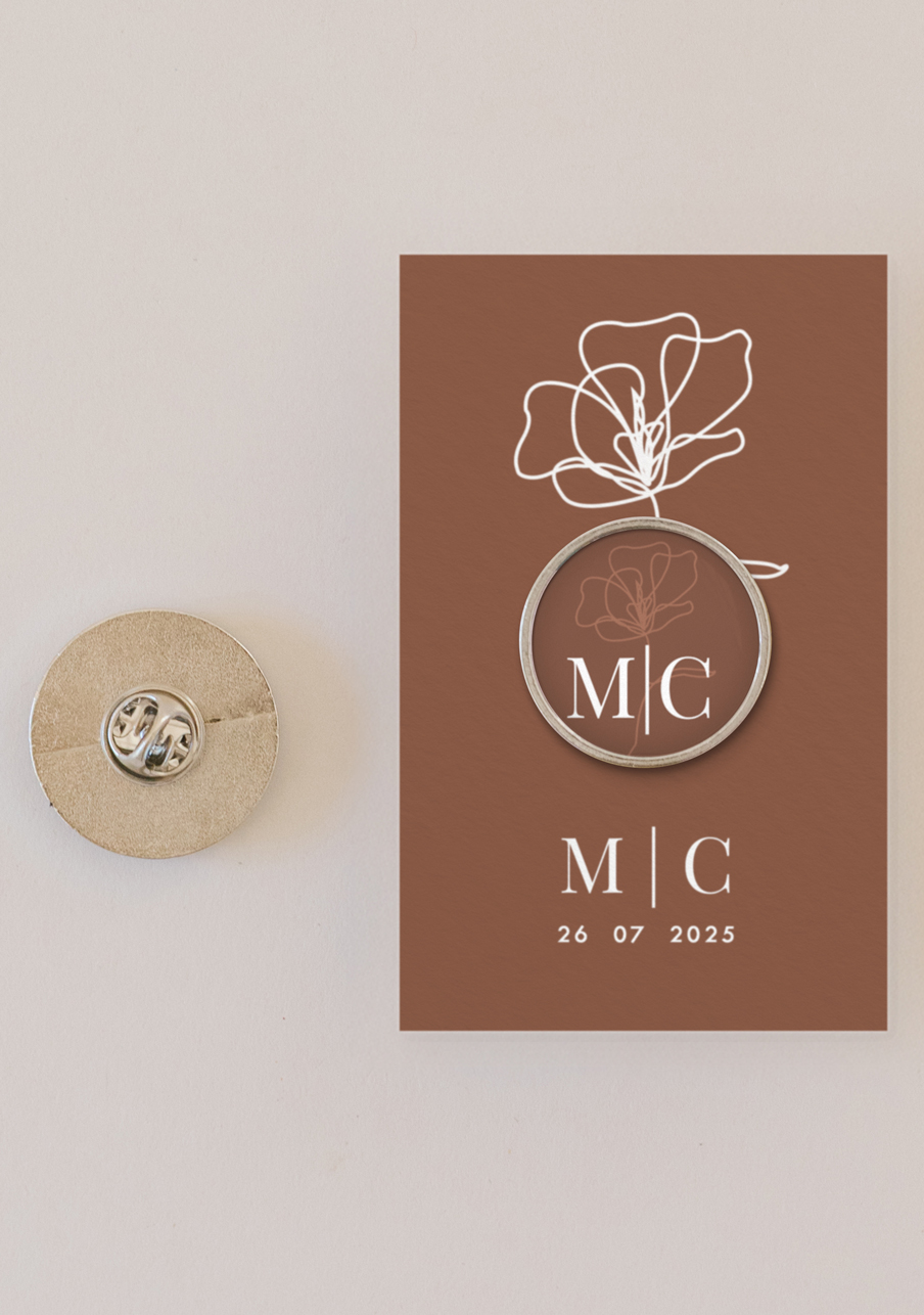 - Offrez à vos invités un pin’s personnalisé de mariage qui fera toute la différence : un petit accessoire tendance, élégant et totalement à votre image. Personnalisable avec vos prénoms, votre date et un visuel unique, ce pin’s devient un souvenir mémorable que chacun pourra conserver et porter. Un cadeau original, durable et irrésistible pour célébrer votre plus beau jour.
