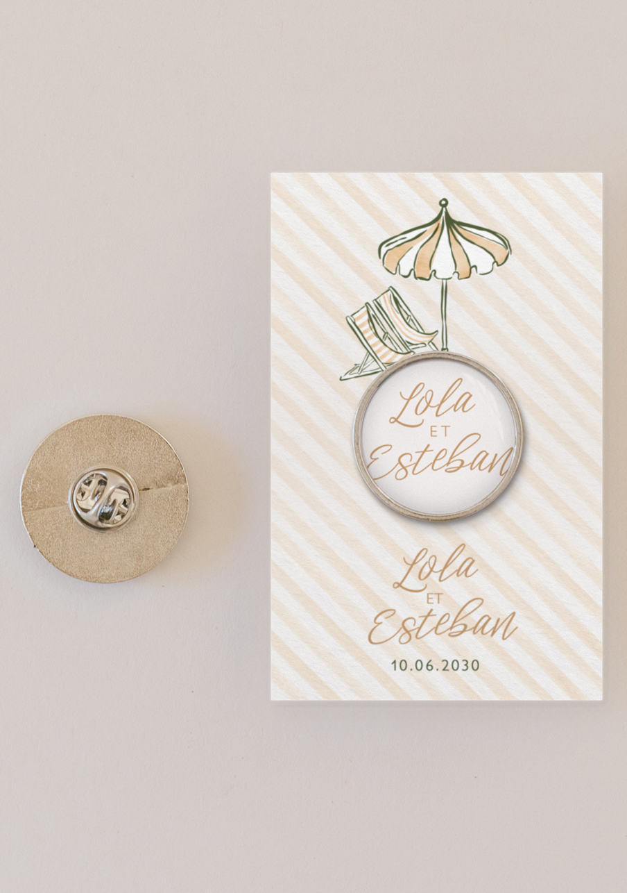 - Offrez à vos invités un pin’s personnalisé de mariage qui fera toute la différence : un petit accessoire tendance, élégant et totalement à votre image. Personnalisable avec vos prénoms, votre date et un visuel unique, ce pin’s devient un souvenir mémorable que chacun pourra conserver et porter. Un cadeau original, durable et irrésistible pour célébrer votre plus beau jour.