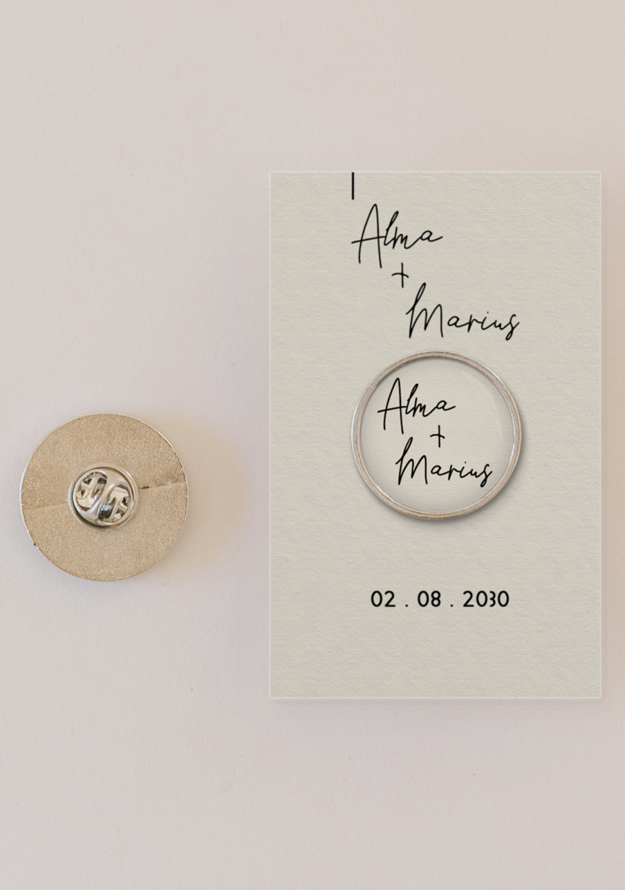 - Offrez à vos invités un pin’s personnalisé de mariage qui fera toute la différence : un petit accessoire tendance, élégant et totalement à votre image. Personnalisable avec vos prénoms, votre date et un visuel unique, ce pin’s devient un souvenir mémorable que chacun pourra conserver et porter. Un cadeau original, durable et irrésistible pour célébrer votre plus beau jour.