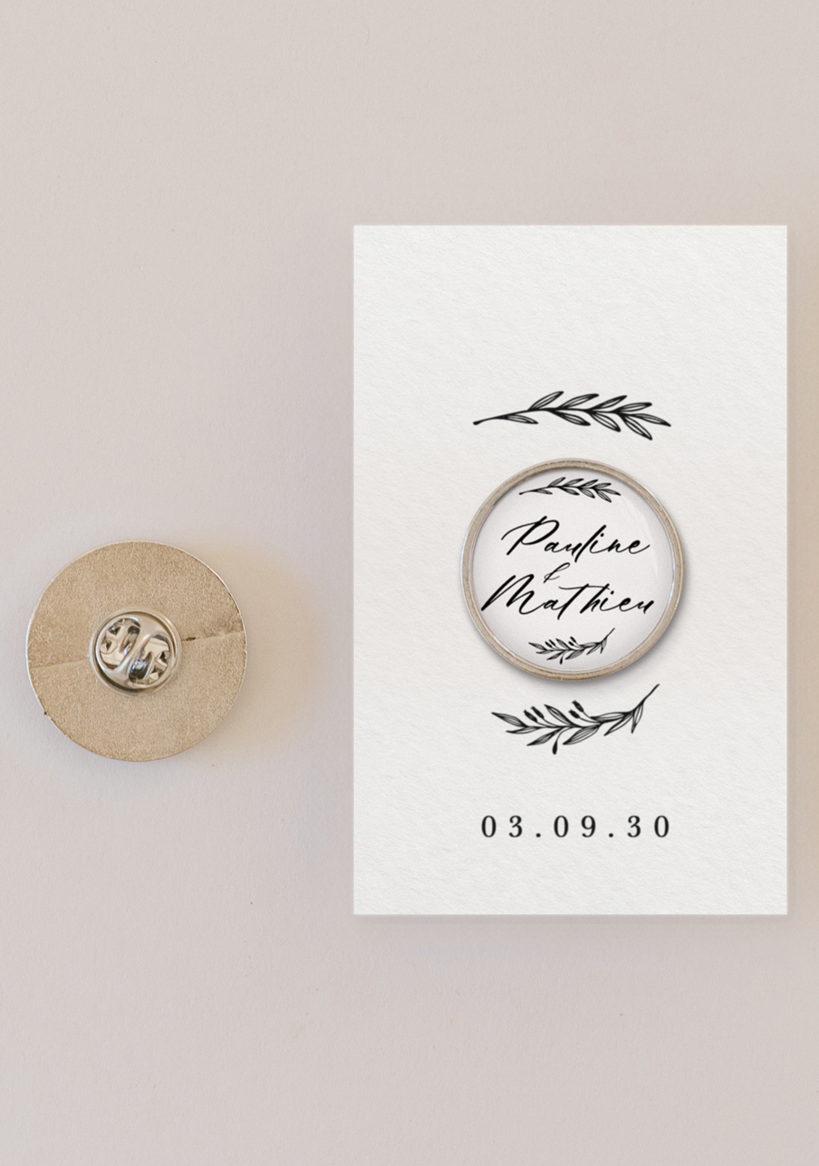 - Offrez à vos invités un pin’s personnalisé de mariage qui fera toute la différence : un petit accessoire tendance, élégant et totalement à votre image. Personnalisable avec vos prénoms, votre date et un visuel unique, ce pin’s devient un souvenir mémorable que chacun pourra conserver et porter. Un cadeau original, durable et irrésistible pour célébrer votre plus beau jour.