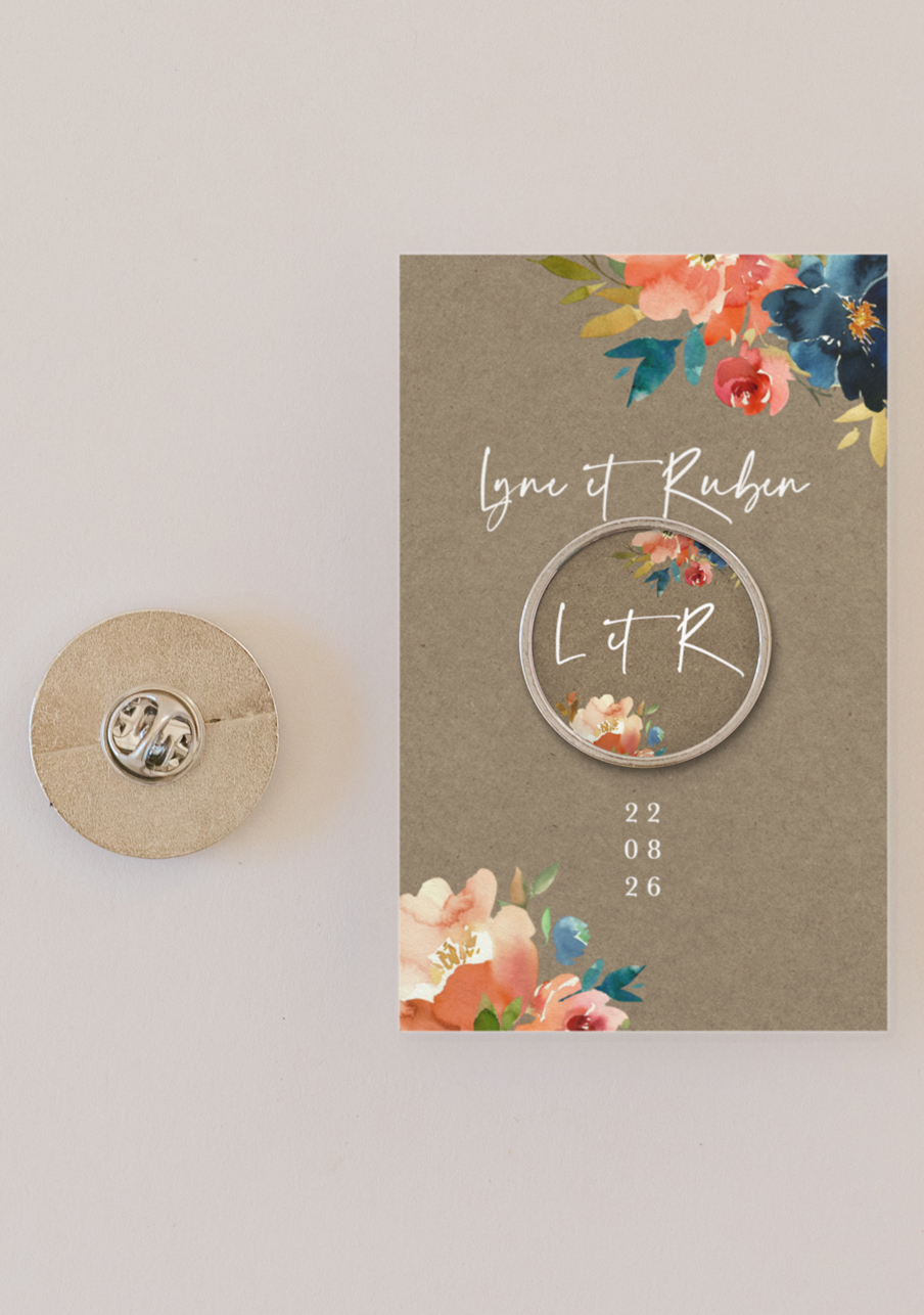 - Offrez à vos invités un pin’s personnalisé de mariage qui fera toute la différence : un petit accessoire tendance, élégant et totalement à votre image. Personnalisable avec vos prénoms, votre date et un visuel unique, ce pin’s devient un souvenir mémorable que chacun pourra conserver et porter. Un cadeau original, durable et irrésistible pour célébrer votre plus beau jour.