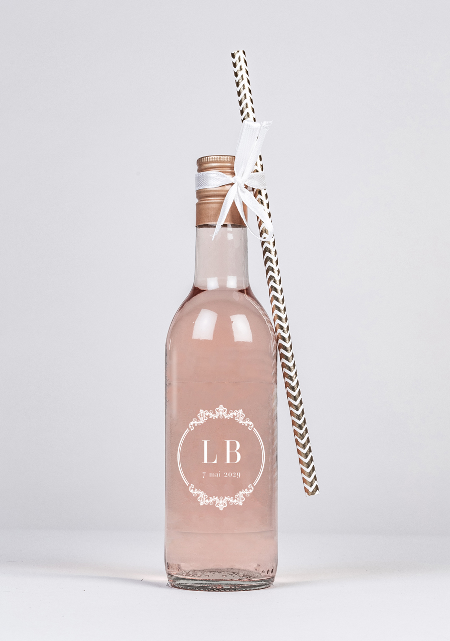 - Conditionnement : Carton contenant 24 bouteilles accompagnées de 24 pailles blanches ornées de chevrons dorés et d'un ruban effet satin de couleur crème et d'une longueur de 25 m