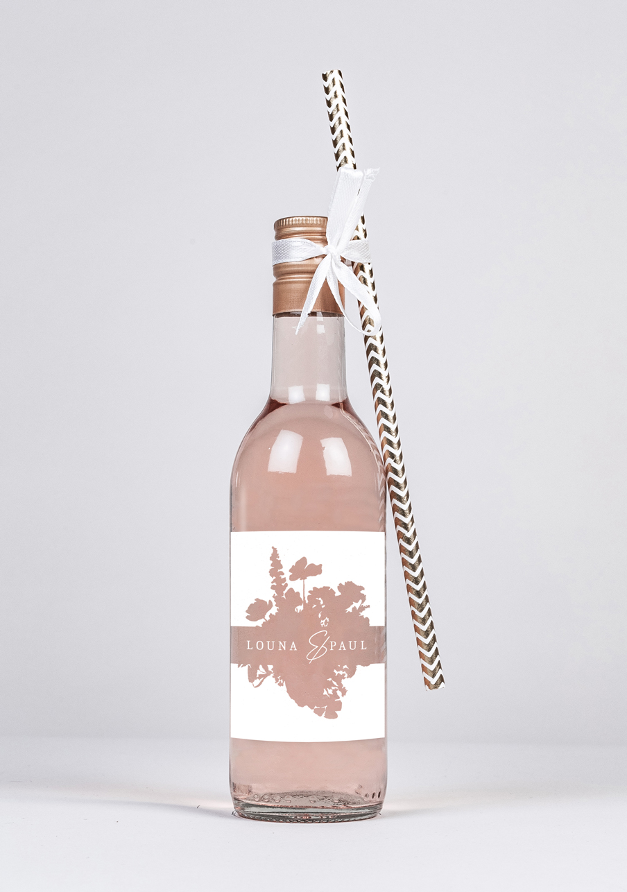 - Conditionnement : Carton contenant 24 bouteilles accompagnées de 24 pailles blanches ornées de chevrons dorés et d'un ruban effet satin de couleur crème et d'une longueur de 25 m