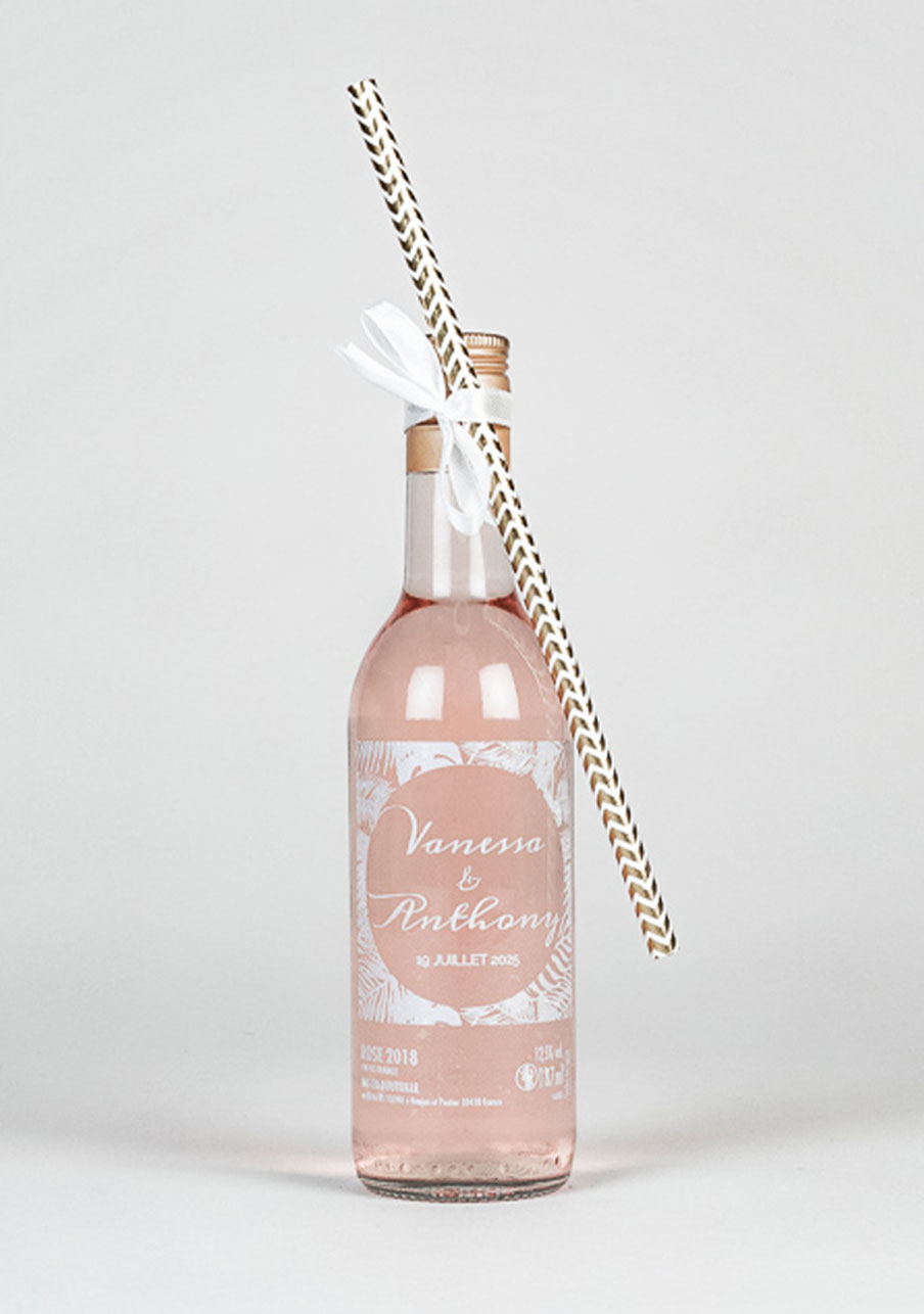 - Conditionnement : Carton contenant 24 bouteilles accompagnées de 24 pailles blanches ornées de chevrons dorés et d'un ruban effet satin de couleur crème et d'une longueur de 25 m