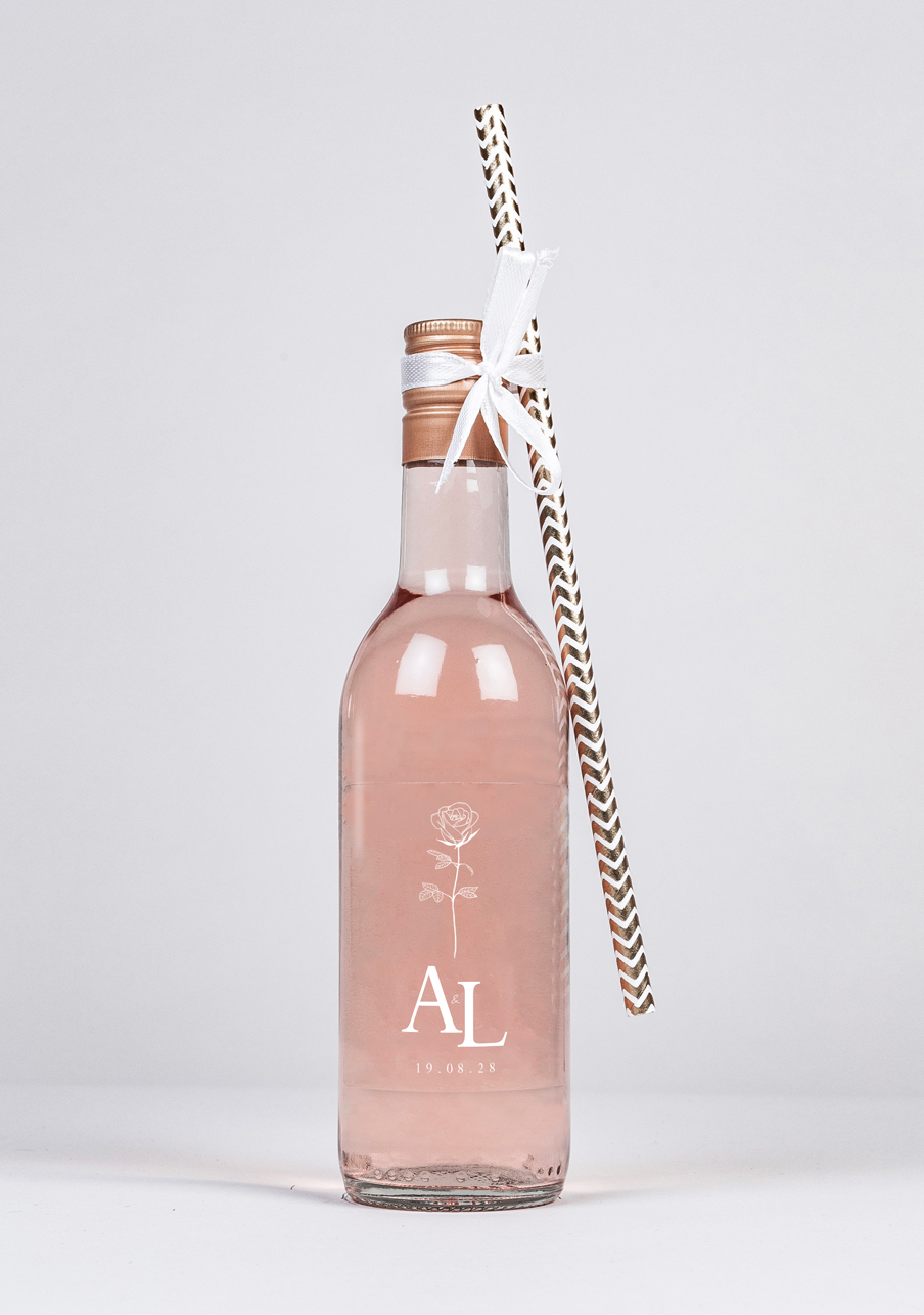 - Conditionnement : Carton contenant 24 bouteilles accompagnées de 24 pailles blanches ornées de chevrons dorés et d'un ruban effet satin de couleur crème et d'une longueur de 25 m