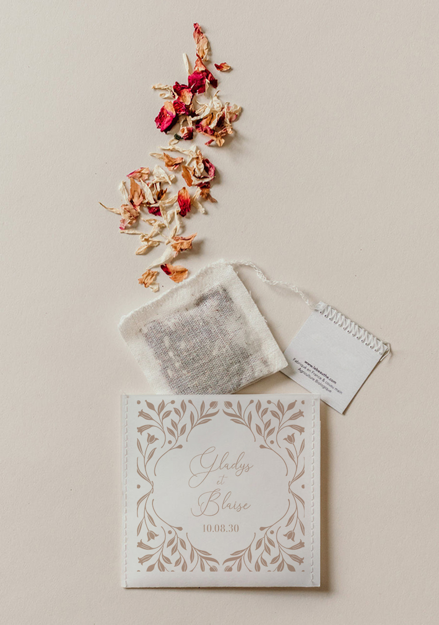 - Sachet biologiques et compostables : surenveloppe en papier texturé premium sourcé en UE et mousseline en coton biologique certifié Ecocert.