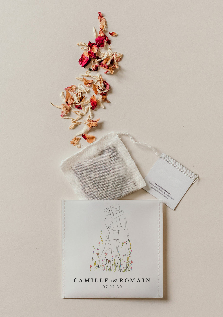 - Sachet biologiques et compostables : surenveloppe en papier texturé premium sourcé en UE et mousseline en coton biologique certifié Ecocert.