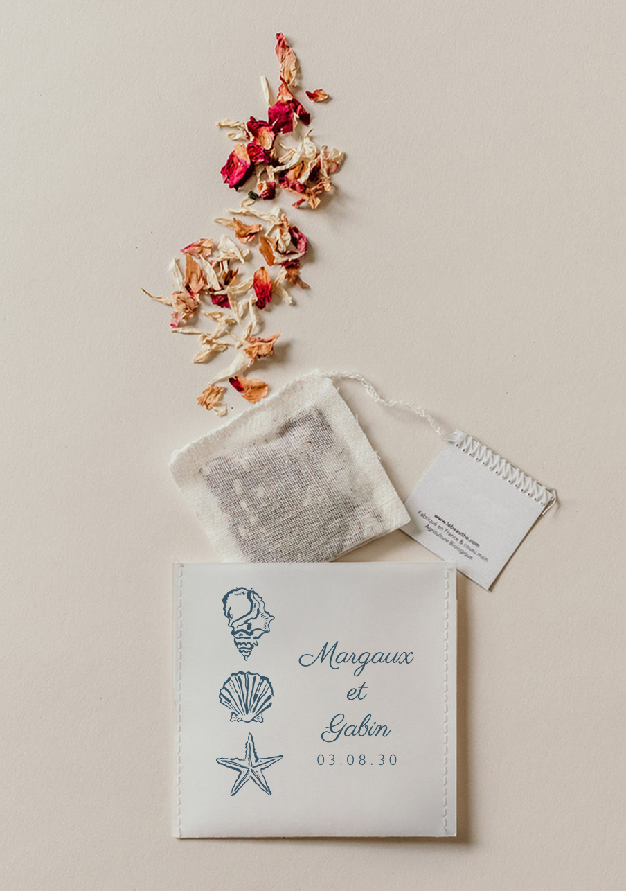 - Sachet biologiques et compostables : surenveloppe en papier texturé premium sourcé en UE et mousseline en coton biologique certifié Ecocert.