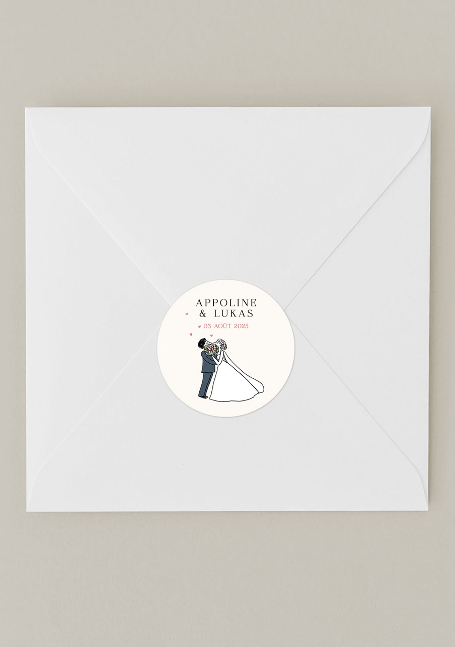 Étiquettes rondes mariage Bouquet de bisous
