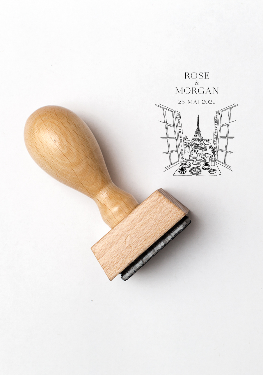 - Composition : manche en bois et et plaque gravée en gomme caoutchouc