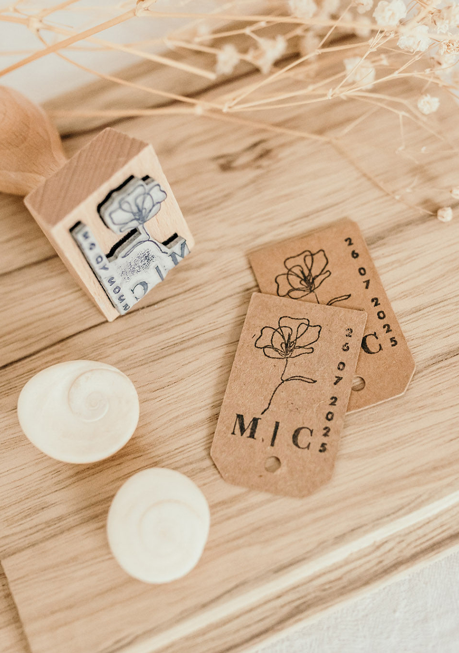 - Composition : manche en bois et et plaque gravée en gomme caoutchouc