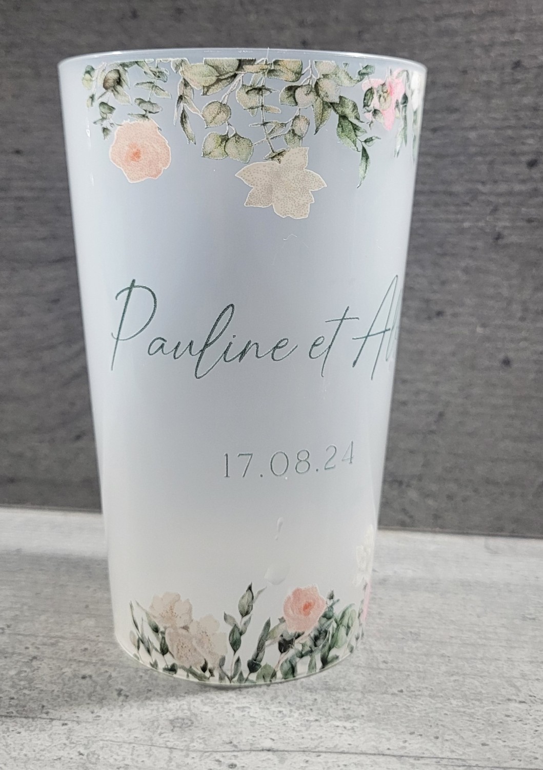 Nous avons commandé des gobelets personnalisés pour offrir à nos invités lors de notre mariage. On nous a envoyé un visuel à vérifier avant que la commande ne parte en production (nous avons trouvé cela très professionnel). Les gobelets sont ensuite arrivés rapidement et le visuel est très beau 🙂.